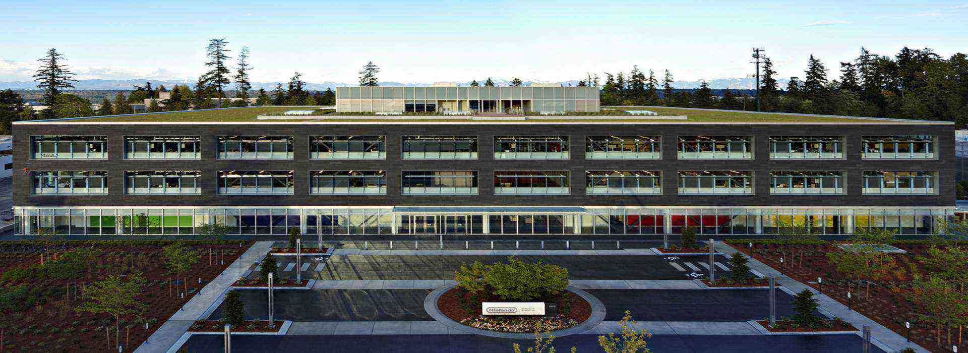 Photography of new Nintendo headquarters and parking structure. Redmond, Washington.